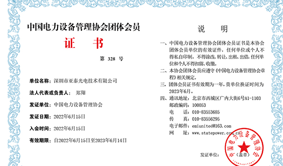 賀:深圳市亞泰光電成為中國(guó)電力設(shè)備管理協(xié)會(huì)會(huì)員單位