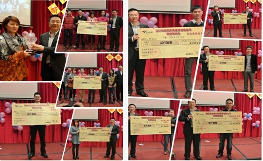 本屆年會由總經辦劉春龍負責,各部門負責人做了關于2013年各部門工作總結報告以及2014年各部門工作規劃,接著公司總經理鄭翔做了2013年工作總結報告,并對2014年公司發展做出了全面規劃。各部經理宣讀了獲得2013年公司優秀員工名單,并號召全公司同事向他們學習。隨后,總經理親自為2013年對公司做出卓越貢獻的員工及團隊頒發獎金,已獎勵他們過去一年的取得的成果 。 年會時,同事們歡聚一堂,各種有趣的娛樂游戲將年會推向了高潮。