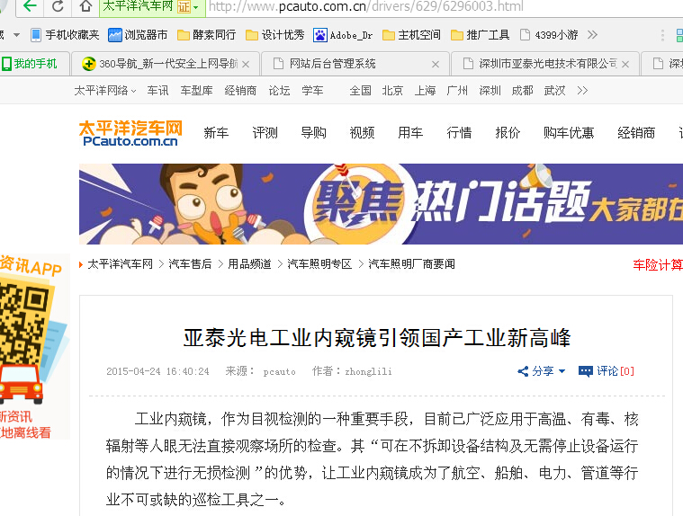 太平洋:亞泰光電工業內窺鏡引領國產工業新高峰