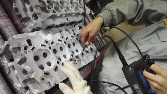 上圖為亞泰光電SIE超清系列視頻內(nèi)窺鏡在雷諾汽車鑄造車間檢查氣缸缸蓋做內(nèi)部探傷,以判斷是否合格.