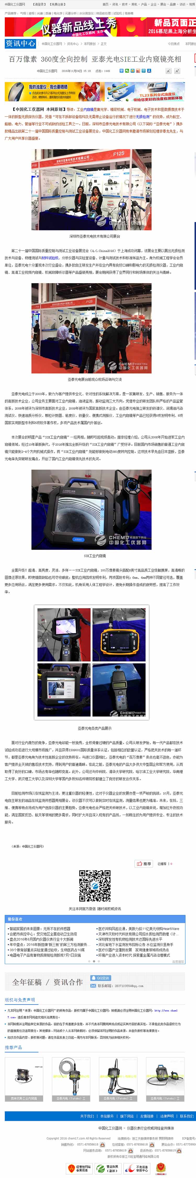 11月初,亞泰光電應邀出席2016第二十一屆上海中國國際質量控制與測試工業設計展覽會,該展會目前是中國工業檢測領域中規模最大、歷史最久、范圍最廣的品牌展會,亞泰光電攜自主研發生產的國產SIE百萬像素超清工業內窺鏡驚艷亮相本次展會,參展期間,應邀接受國內最早進入儀器儀表行業的專業網站——化工儀器網《高端訪談》欄目專訪,《高端訪談》欄目是中國化工儀器網全新打造的核心欄目,旨在把握行業跳動脈搏、全面報道名企動態,此次訪談節目在業內外獲得了較好的傳播效果。