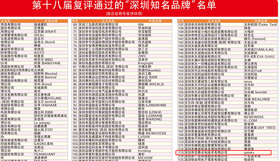 2021年1月21日,第十八屆“深圳知名品牌”評選結(jié)果揭曉,深圳市亞泰光電技術(shù)有限公司再次復(fù)評榮獲第十八屆“深圳知名品牌”殊榮。