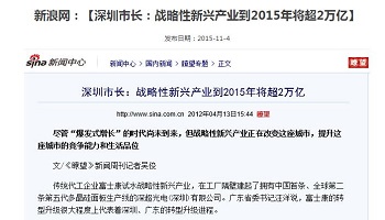 新浪網(wǎng):【深圳市長(zhǎng):戰(zhàn)略性新興產(chǎn)業(yè)到2015年將超2萬(wàn)億】